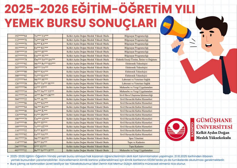 2025-2026 Eğitim-Öğretim Yılı Yemek Bursu Sonuçları