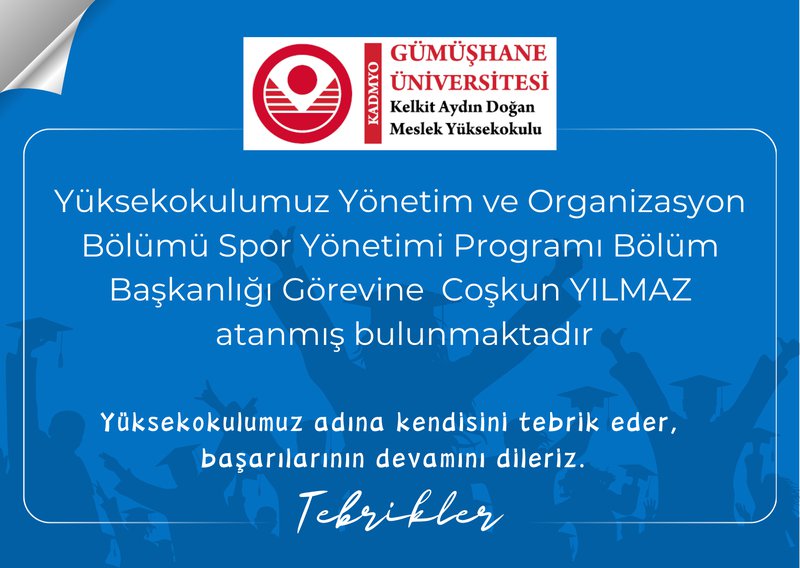 Yüksekokulumuz Yönetim ve Organizasyon Bölümü Spor Yönetimi Programı Bölüm Başkanlığı Görevine Coşkun YILMAZ Atanmış Bulunmaktadır